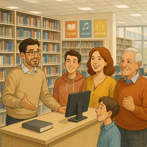 - Accueillir les usagers : Informer le public sur les ressources disponibles et l'aider à naviguer dans la bibliothèque.